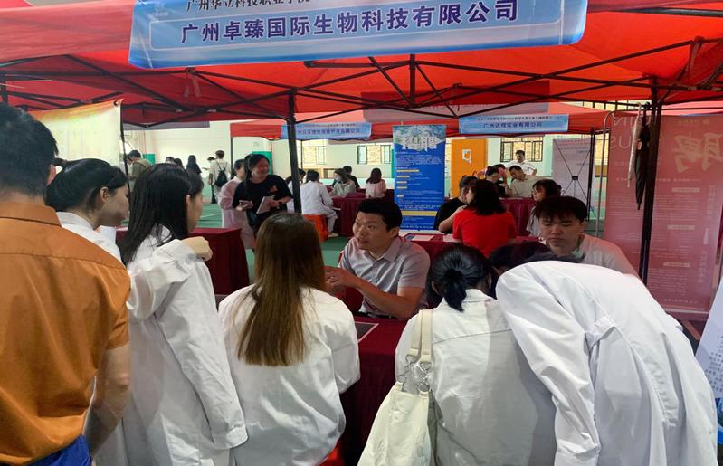 招聘會現(xiàn)場氛圍濃厚、人頭攢動、氣氛熱烈。同學們紛紛身著整潔的服裝,手持簡歷,積極與用人單位交流互動。廣州卓臻國際生物科技有限公司的責任人向同學詳細介紹了崗位需求、薪資待遇、晉升空間等求職者普遍關心的問題。