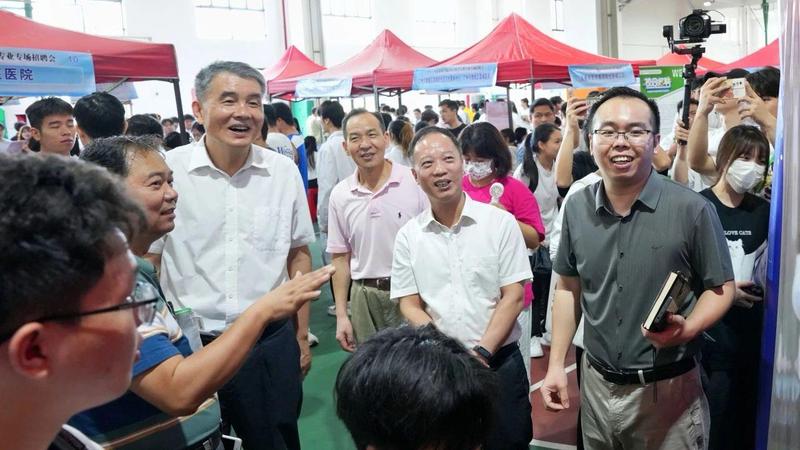 4月26日,我校聯(lián)合增城區(qū)人力資源保障局、廣州市增城區(qū)衛(wèi)生健康局在華立園文體樓1樓舉辦了"白衣使命,職引前行一2024年醫(yī)學大類專業(yè)畢業(yè)生專場校園招聘會"。本次招聘會邀請到53家知名醫(yī)院社區(qū)衛(wèi)生服務中心,醫(yī)藥公司醫(yī)療機構(gòu)等企業(yè)參加招聘,面向中醫(yī)藥學院健康學院等2000余名醫(yī)學生提供1600多個實習和就業(yè)崗位。校長陳德清、黨委書記陳良聲、健康學院院長雷毅雄、中醫(yī)醫(yī)藥學院院長王暉、招生就業(yè)處處長蘇越等領導蒞臨現(xiàn)場熱情接待了用人單位,并同求職學子親切交流。