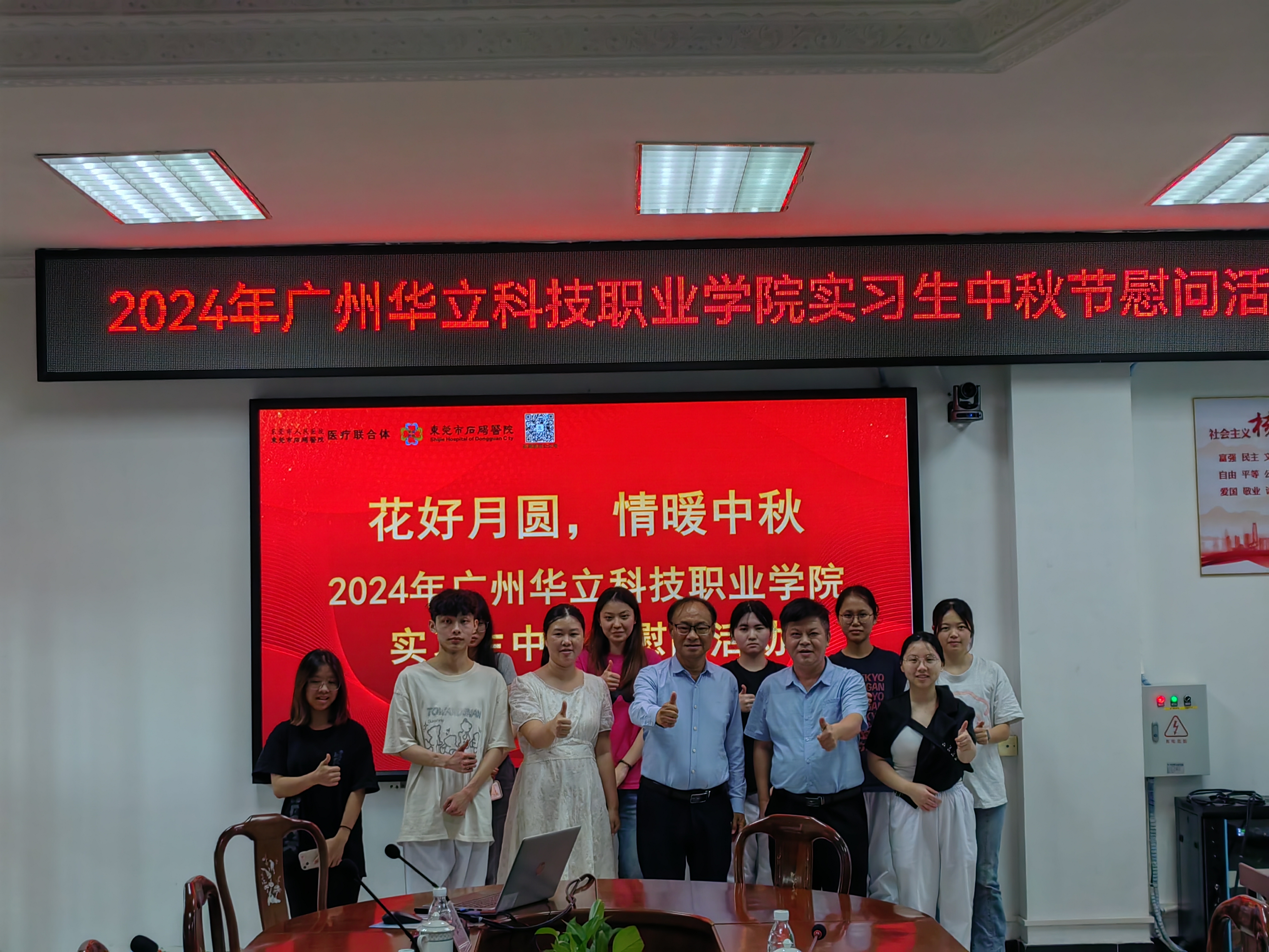 在中秋佳節(jié)即將到來之際,為關懷在實習單位努力奮斗的學子們,同時也為進一步加強醫(yī)校合作,了解22級實習學生的實習和生活的情況。于2024年9月12日上午,廣州華立科技職業(yè)學院健康學院副院長溫偉勝以及健康學院校外教學主任李景德看望慰問健康學院22級實習學生。東莞市石碣醫(yī)院相關負責人、實習生參加了座談。