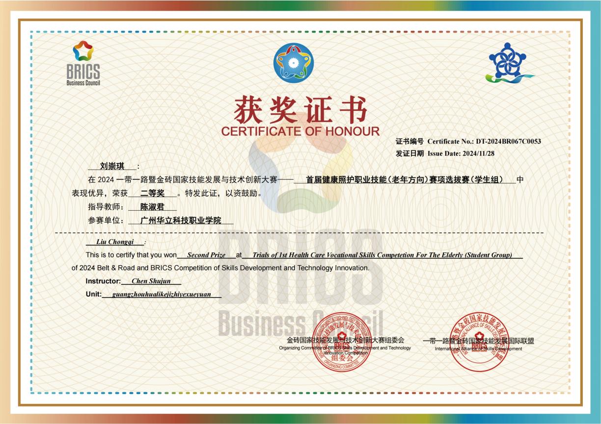 經(jīng)過激烈角逐,我校健康學(xué)院陳淑君老師指導(dǎo)的劉崇琪同學(xué)榮獲選拔賽二等獎,以選拔賽53名的成績成功晉級決賽,并在正式?jīng)Q賽中獲得優(yōu)秀獎;楊敬博師指導(dǎo)的何嘉欣同學(xué)在選拔賽中榮獲優(yōu)秀獎。