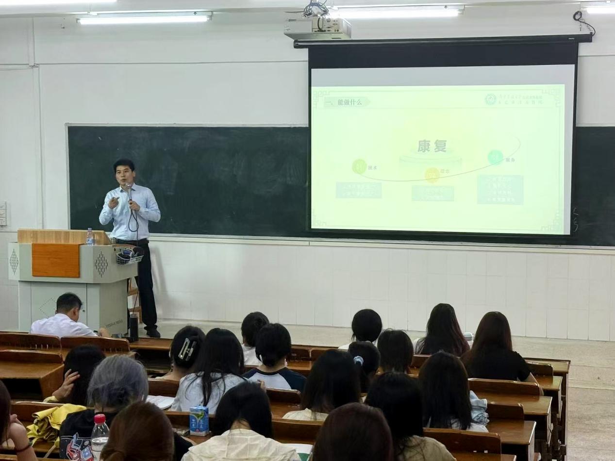 在技能體系介紹環(huán)節(jié),為讓學(xué)生更直觀地了解專(zhuān)業(yè)實(shí)踐情況,張澤松副教授采用“理論 + 實(shí)操”相結(jié)合的方式,以臨床治療病例為例,生動(dòng)展示了康復(fù)治療技術(shù)專(zhuān)業(yè)及中醫(yī)專(zhuān)業(yè)的實(shí)踐場(chǎng)景,助力學(xué)生們對(duì)未來(lái)的工作環(huán)境和職責(zé)形成更清晰的認(rèn)識(shí)。