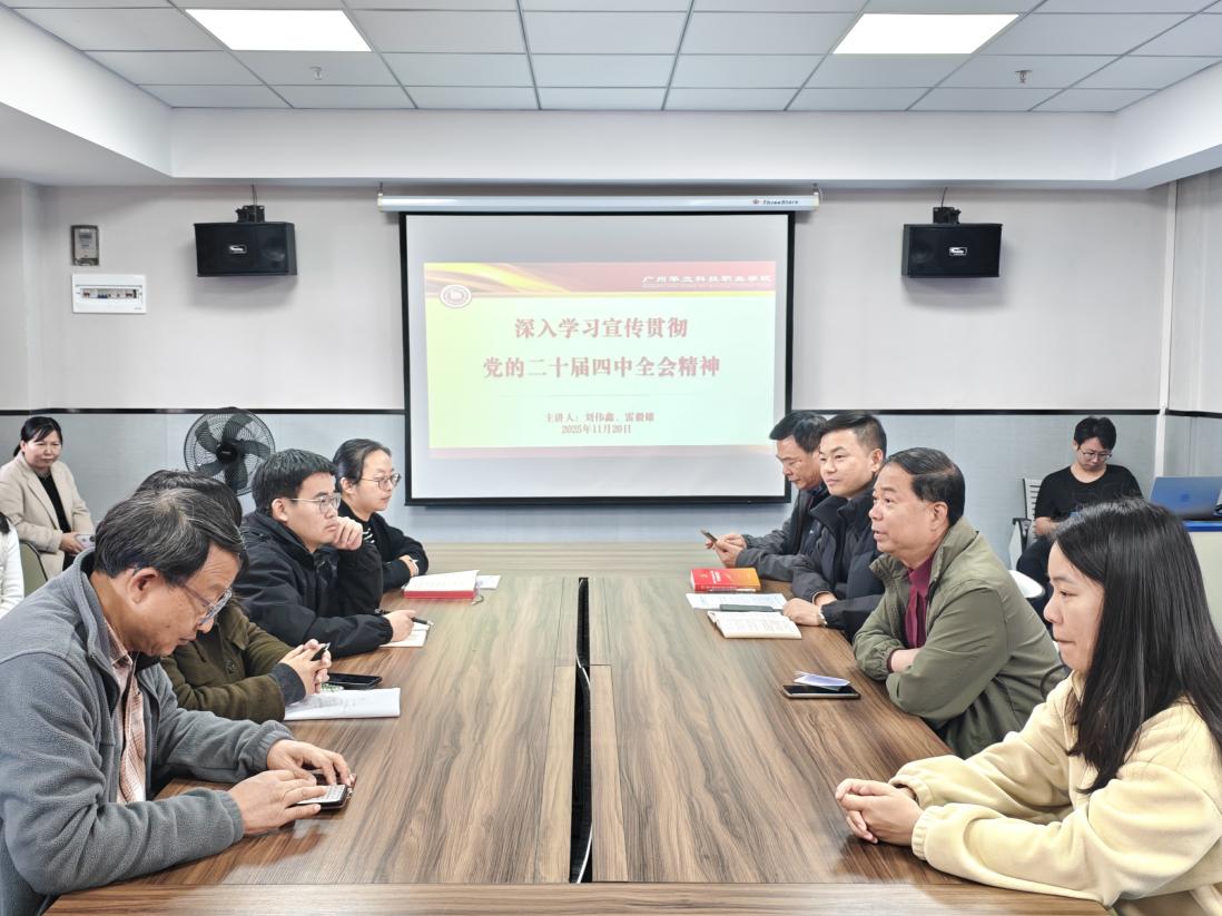 傳達核心精神,明確育人使命。劉偉鑫書記精準傳達《中共廣東省委關于認真學習宣傳貫徹黨的二十屆四中全會精神的通知》核心要義,細化部署“六個一百”宣講行動在教育領域的落地舉措,帶領全體教師深入學習《中國共產(chǎn)黨第二十屆中央委員會第四次全體會議公報》精神。會議緊扣“十五五”規(guī)劃“六個堅持”重要原則,結合科技航天領域重大突破,闡明教育在科技創(chuàng)新、人才培養(yǎng)中的根基作用,明確教師立德樹人的核心使命。同時聚焦校園民生與學生成長保障,強調將擴大護理服務、安寧療護理念融入校園健康管理,以“互聯(lián)網(wǎng)+康復”為支撐,按“一院一策”優(yōu)化校園醫(yī)療服務與健康指導體系,推動全會精神轉化為教學實踐與學生管理動能。