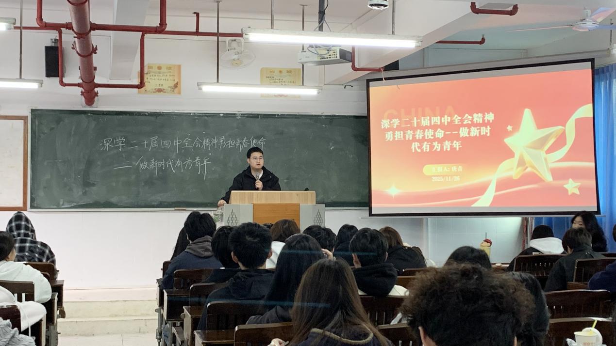 2025年11月27日上午,2024年11月27日上午,廣州華立科技職業(yè)學(xué)院健康學(xué)院在西三605教室開展了一場(chǎng)以“深學(xué)二十屆四中全會(huì)精神勇?lián)啻菏姑鲂聲r(shí)代有為青年”為主題的宣講活動(dòng)。此次宣講由健康學(xué)院唐青老師主講,旨在引導(dǎo)青年學(xué)子深刻領(lǐng)會(huì)黨的二十屆四中全會(huì)精神,增強(qiáng)使命意識(shí),激發(fā)奮斗熱情。