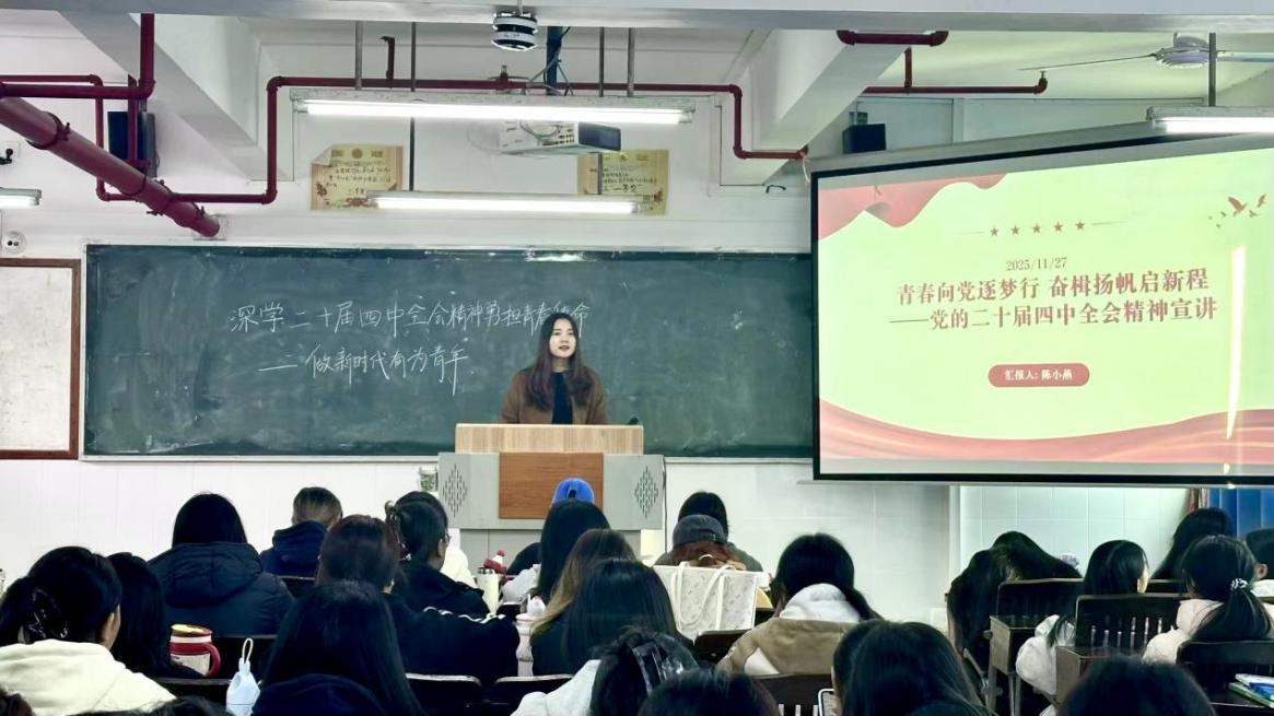 為深入學(xué)習(xí)宣傳黨的全會(huì)精神,引導(dǎo)青年學(xué)子堅(jiān)定理想信念、勇?lián)鷷r(shí)代使命,2025年11月28日上午,廣州華立科技職業(yè)學(xué)院健康學(xué)院在西三603教室順利舉行“青春向黨逐夢(mèng)行 奮楫揚(yáng)帆啟新程——黨的二十屆四中全會(huì)精神專題宣講” 活動(dòng)。本次宣講由健康學(xué)院輔導(dǎo)員陳小燕老師主講。