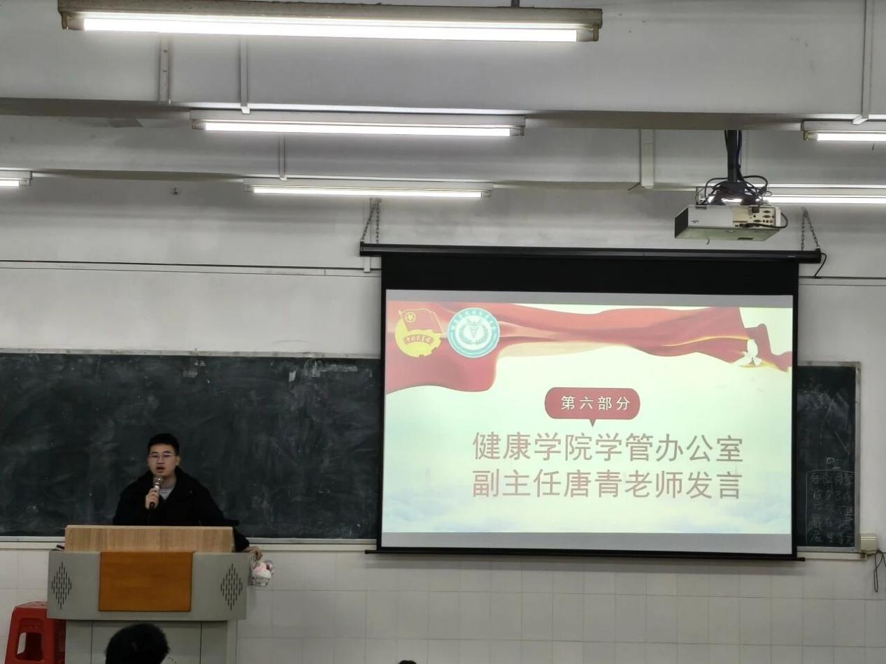 最后,健康學院學管副主任唐青老師對本次大會進行總結。他充分肯定團委學生會本學期在多領域取得的工作成效,向辛勤付出的師生致以誠摯感謝。同時,他也指出組織在部門協(xié)同、責任意識、創(chuàng)新能力等方面存在的不足,并提出改革骨干培養(yǎng)機制、深化服務師生宗旨、加強校內外聯(lián)動等具體要求,勉勵全體成員凝心聚力、再接再厲,為學院發(fā)展再建新功。