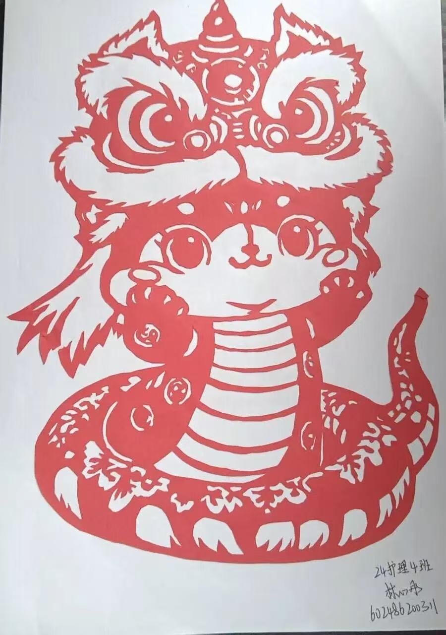 此次剪紙活動(dòng)旨在讓同學(xué)們深入了解剪紙藝術(shù)的歷史與文化內(nèi)涵,傳承非遺文化;同時(shí)為同學(xué)們搭建放松身心、展示自我的平臺(tái),營造積極向上的校園氛圍,還能在實(shí)踐中鍛煉動(dòng)手能力與藝術(shù)創(chuàng)造力,增強(qiáng)團(tuán)學(xué)凝聚力?;顒?dòng)開展期間,同學(xué)們積極參與,將創(chuàng)意與巧思融入剪紙作品,一幅幅兼具傳統(tǒng)韻味與個(gè)人風(fēng)格的剪紙作品相繼誕生,展現(xiàn)出對傳統(tǒng)文化的理解與詮釋。(以下展示為部分獲獎(jiǎng)同學(xué)作品)
