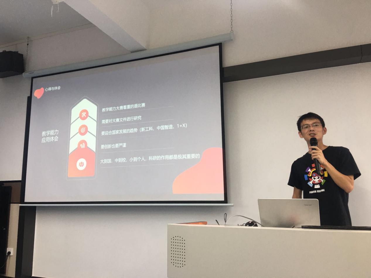 對“教學(xué)能力大賽”提出了自己個(gè)人的觀點(diǎn),認(rèn)為教學(xué)能力大賽看重的是比賽,要迎合國家發(fā)展的趨勢(新工科、中國制造、1+X),既要?jiǎng)?chuàng)新也要嚴(yán)謹(jǐn),要做到大到國,中到校,小到個(gè)人,科研的作用都極其重要的。