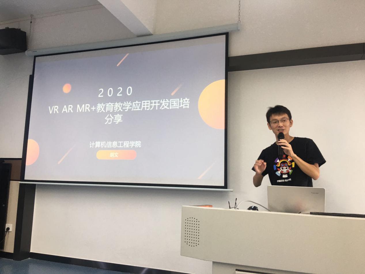 胡文老師向我們簡述了什么是VR AR MR,VR的發(fā)展歷程、VR的3特性,對VR的發(fā)展前景以及對VR的現(xiàn)狀進(jìn)行了一系列的簡述介紹,還向我們展現(xiàn)了在培訓(xùn)期間所用VR技術(shù)拍攝的視頻和自己用VR技術(shù)做的一款小游戲。