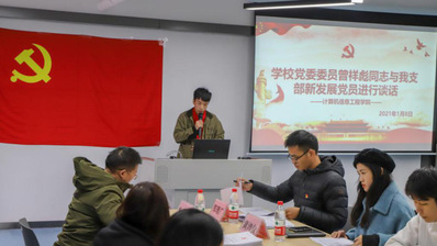 為深入了解2020年下半年發(fā)展黨員的思想動態(tài)、入黨信念及實際表現(xiàn),計算機信息工程學(xué)院黨支部于2021年1月8日下午14:20在西三教學(xué)樓501課室,召開學(xué)校黨委委員曾祥彪與我支部新發(fā)展黨員進(jìn)行談話會議。參于本次會儀人員有:黨委委員曾祥彪同志,計算機信息工程學(xué)院黨支部副書記鄭理廣同志,黃沛儀同志以及2020年下半年發(fā)展黨員。