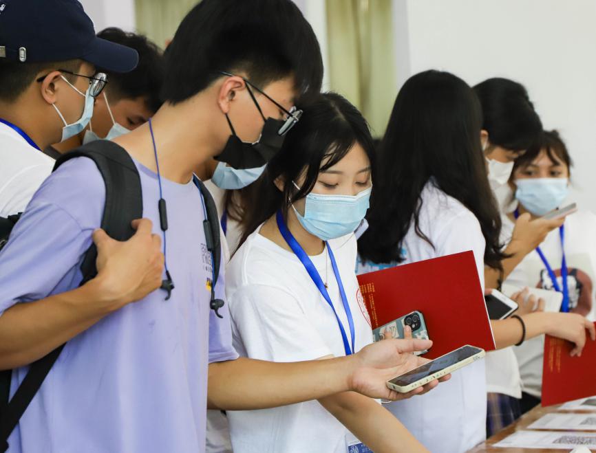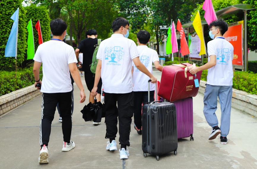 9月4日,上午8點前所有人員已經(jīng)到位,并準(zhǔn)備好當(dāng)天所需物資,隨時準(zhǔn)備迎接新生。新生在綜合樓大廳檢錄報到,由指引組的工作人員和志愿者接待,引導(dǎo)新生到科技樓大本營完成各項入學(xué)手續(xù),帶領(lǐng)家長到休息區(qū),最后由機動組帶領(lǐng)和幫助新生入住宿舍。