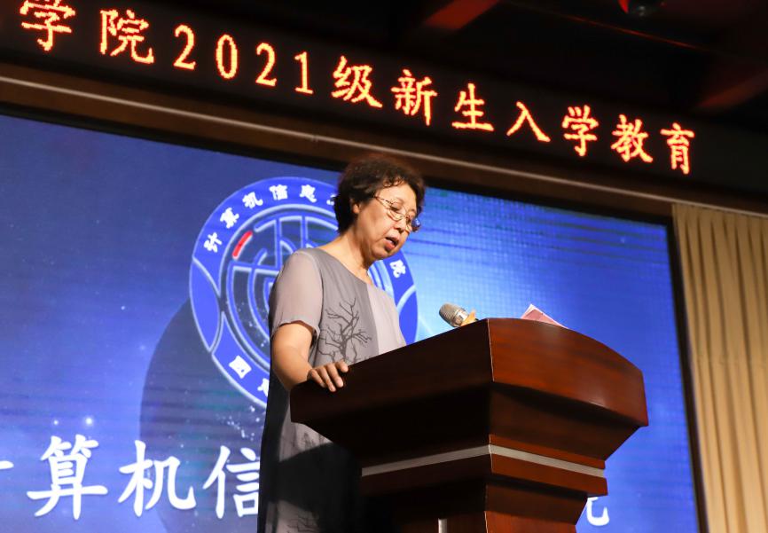 先由李麗萍教授致辭,李麗萍教授對21級新生的到來表示喜悅,介紹了計(jì)算機(jī)學(xué)院概況,并深情寄語,希望新生們能在較短的時間內(nèi)適應(yīng)大學(xué)新生活,以學(xué)習(xí)為主,學(xué)會感恩,懂得人情世故。