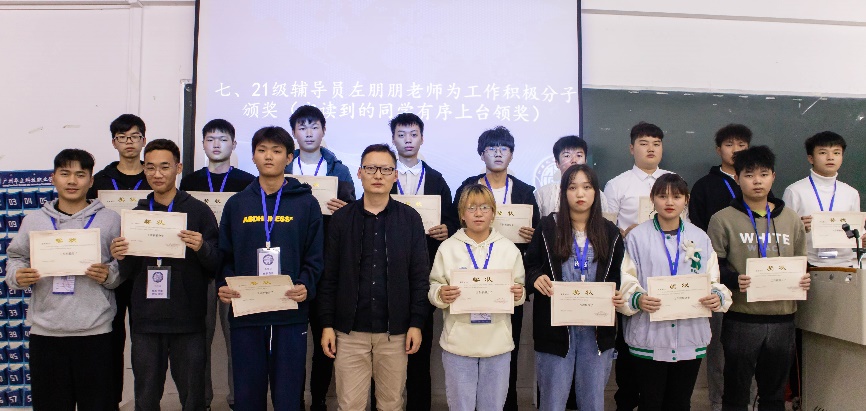 在全體人員起立奏唱團(tuán)歌后,由團(tuán)總支學(xué)生會(huì)主席團(tuán)王俊鑫同學(xué)以及13位部門負(fù)責(zé)人代表上臺(tái)對(duì)本學(xué)期的工作進(jìn)行總結(jié)發(fā)言。隨后由郭麗純老師、溫??@蠋?、左朋朋老師分別為20級(jí)優(yōu)秀負(fù)責(zé)人以及21級(jí)工作積極分子頒獎(jiǎng)。