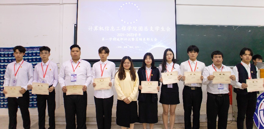 2021年12月23日下午六點(diǎn),計(jì)算機(jī)信息工程學(xué)院團(tuán)總支學(xué)生會(huì)于西區(qū)圖書館404教室舉行述職評(píng)議總結(jié)表彰大會(huì)。出席本次會(huì)議的有計(jì)算機(jī)信息工程學(xué)院學(xué)管線負(fù)責(zé)人郭麗純老師,團(tuán)總支書記溫??@蠋煟?/span>21級(jí)輔導(dǎo)員左朋朋老師以及團(tuán)總支學(xué)生會(huì)全體成員。