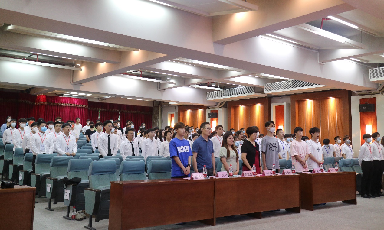 大會開始,由主持人引導(dǎo)參會人員奏唱團歌《光榮??!中國共青團》。