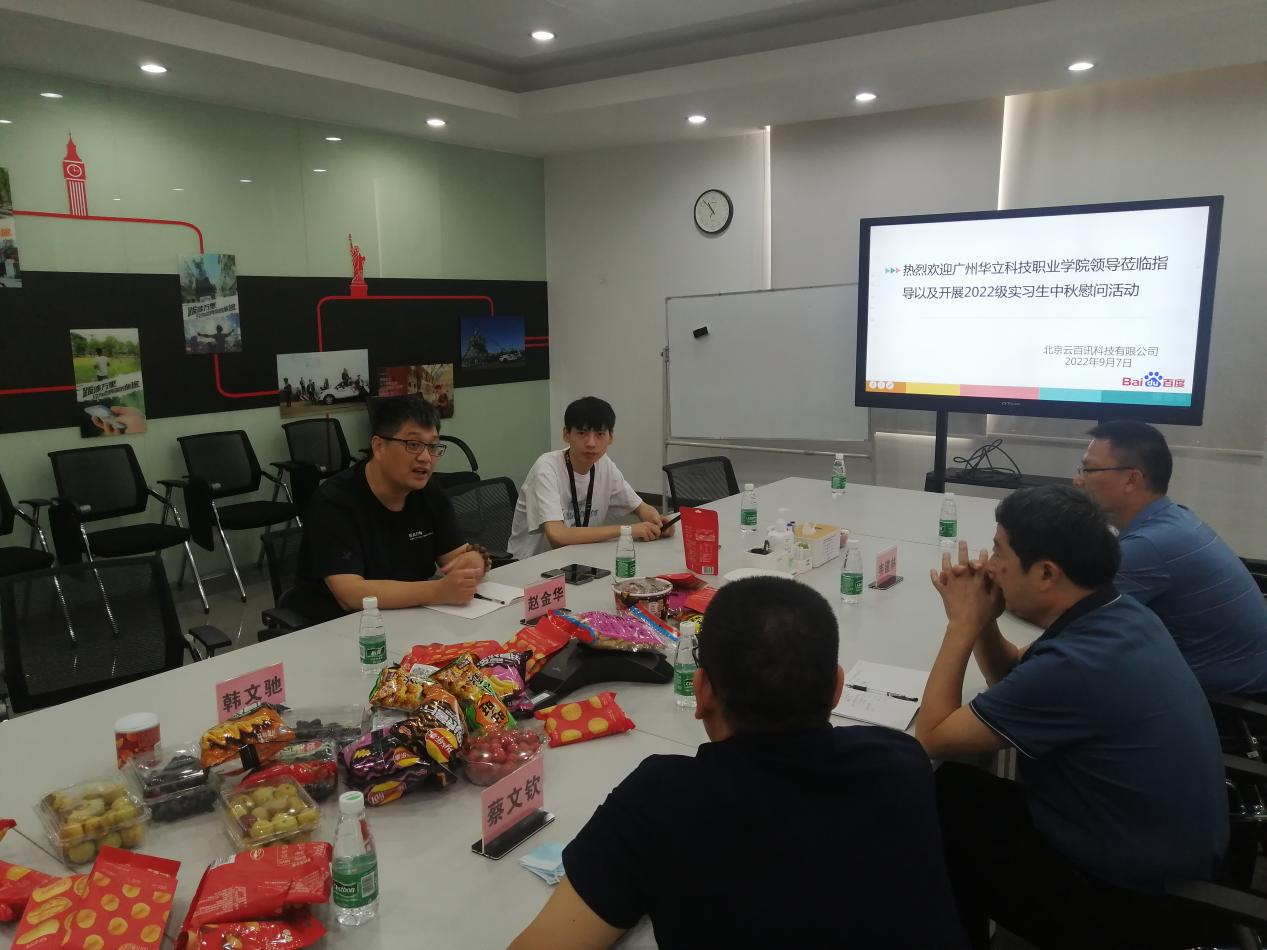 9月7日,中秋佳節(jié)之際,廣州華立科技職業(yè)學(xué)院校長(zhǎng)易健民、校外教學(xué)與就業(yè)管理處副科長(zhǎng)韋建林、計(jì)算機(jī)信息工程學(xué)院辦公室主任蔡文欽、校外教學(xué)副主任黃志強(qiáng)老師一行到北京云百訊科技有限公司佛山分公司看望2020級(jí)實(shí)習(xí)學(xué)生,開展中秋節(jié)慰問(wèn)活動(dòng)。