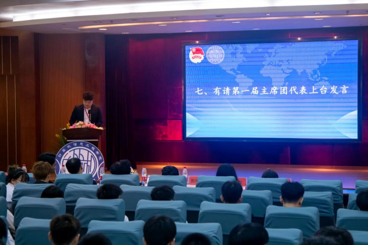 計(jì)算機(jī)信息工程學(xué)院院長王建華教授代表計(jì)算機(jī)學(xué)院對出席本次大會的老師和同學(xué)表示衷心的感謝,向團(tuán)委學(xué)生會各位負(fù)責(zé)人、新加入成員致以親切的問候和美好的祝愿!王建華院長表示,希望同學(xué)們能夠以傳承、創(chuàng)新、團(tuán)結(jié)、自信為理念,希望同學(xué)們時刻保持熱情,戮力同心,通力合作,主動學(xué)習(xí),尋找自己的價值,起到模范帶頭作用!