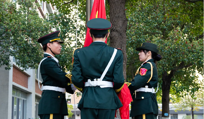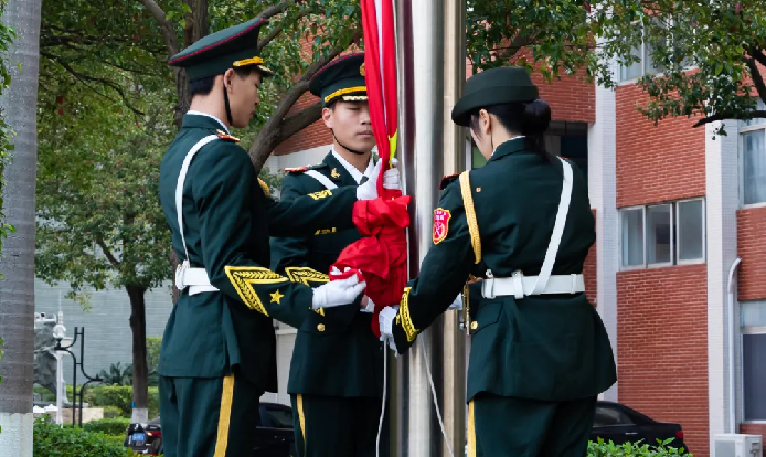 升旗儀式開始,國旗護(hù)衛(wèi)隊(duì)的旗手們邁著鏗鏘有力的步伐,護(hù)衛(wèi)鮮艷的五星紅旗入場。五星紅旗冉冉升起,全體師生面向國旗,奏唱國歌,行注目禮,以飽滿的精神狀態(tài)向祖國致敬,表達(dá)對祖國母親的無限熱愛之情。