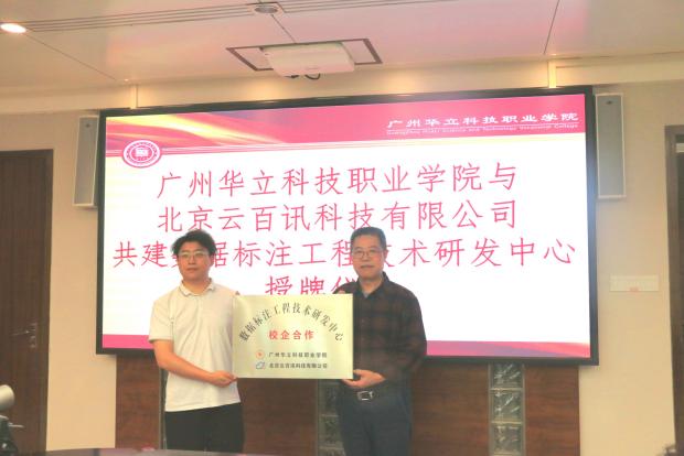 最后企業(yè)代表分別將信創(chuàng)產業(yè)學院、360網絡安全實習實訓基地、數據標注工程技術研發(fā)中心和青少年機器人技術等級考試服務網點四塊牌匾授予廣州華立科技職業(yè)學院,這也標志著雙方的校企合作模式進入了一個全新“深度融合”階段。