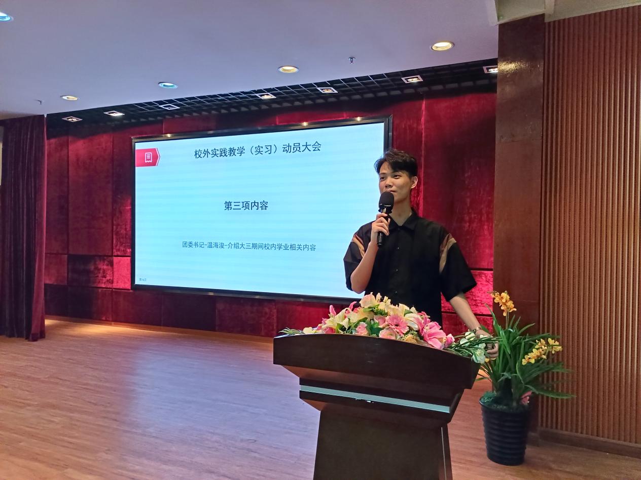 團(tuán)委書記溫老師要求同學(xué)在實習(xí)實踐期間做好團(tuán)建工作以及與學(xué)校保持溝通,要密切關(guān)注相關(guān)考試考證繳費等信息通知,保證完成學(xué)業(yè)順利畢業(yè)。