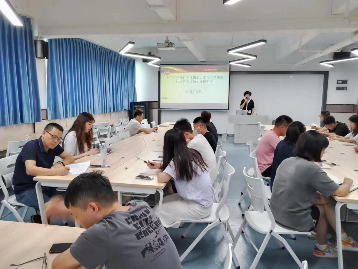2023年7月10日下午2點半,計算機信息工程學(xué)院全體教師職工在西三-501召開會議,云浮校區(qū)全體教師線上參加。會議第一項,由計算機學(xué)院院長王建華教師傳達(dá)上午校領(lǐng)導(dǎo)會議精神,成立計算機信息工程學(xué)院工作指南落實領(lǐng)導(dǎo)小組,組長由王建華院長和云浮郭觀七院長擔(dān)任,組員由學(xué)院四線主任以及系主任擔(dān)任。會議第二項,由王建華院長講述關(guān)于職稱評審材料的相關(guān)事由,提醒參加職稱評審的教師必須嚴(yán)格按照要求準(zhǔn)備材料。會議第三項,由人事主任王蘭豐老師傳達(dá)講解近兩周的工作安排,尤其是關(guān)于工作指南的相關(guān)事宜,倡導(dǎo)全體教師學(xué)習(xí)改進(jìn)工作指南。