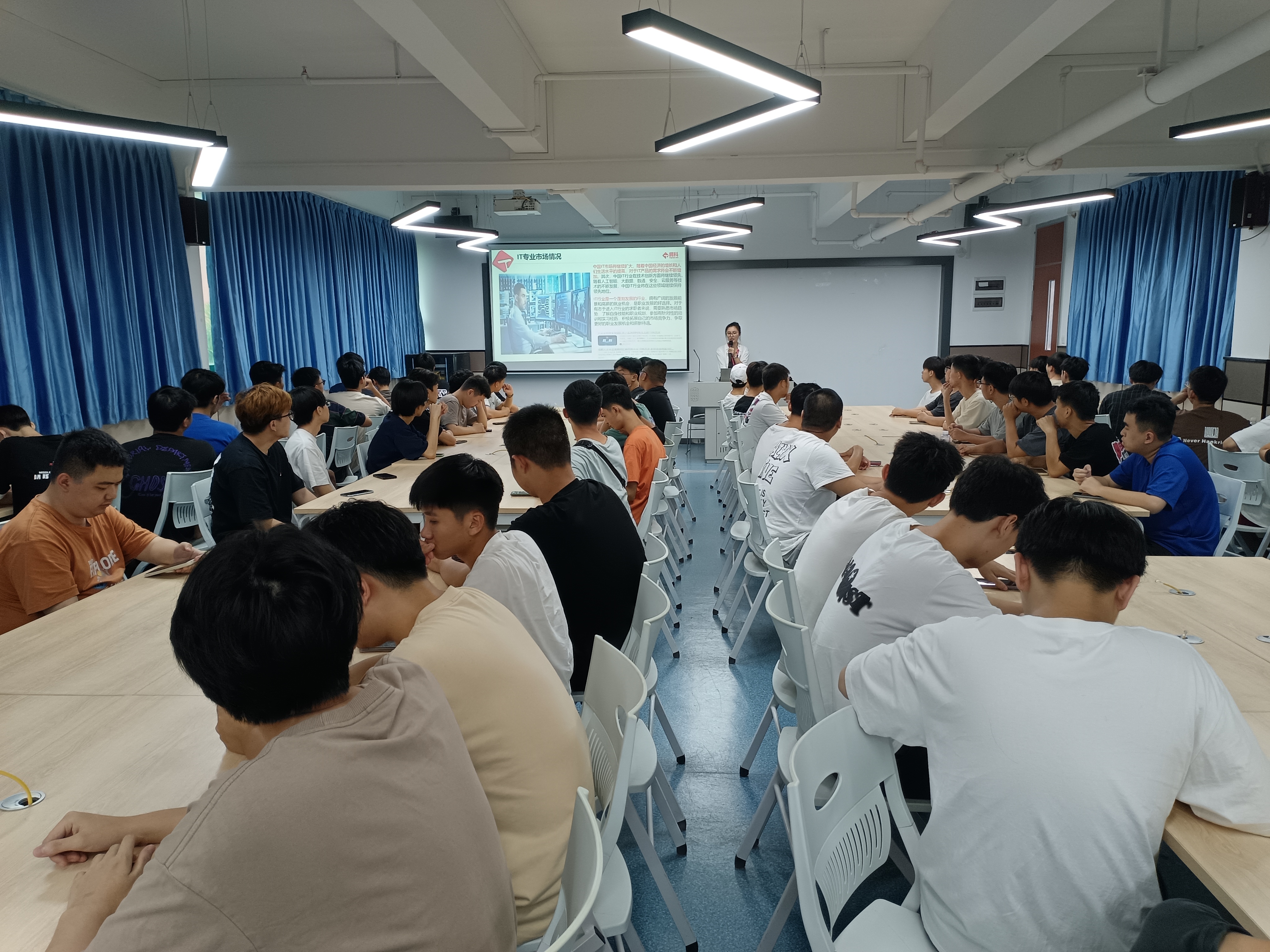 董工將這次講座內(nèi)容分為四個部分。一是了解專業(yè)方向,分別為了解技術(shù)、了解形勢、了解出路、了解專業(yè);二是未來的崗位方向,分別為發(fā)展方向、崗位方向、技術(shù)方向、細節(jié)技能;三是華為技術(shù)認證,分別為認證重要性、華為等級、華為介紹、華為認證;四是華為技術(shù)價值,分別為學(xué)技術(shù)、項目經(jīng)驗、明確方向、學(xué)習(xí)能力;學(xué)生了解之后,更明白了自己往后三年的學(xué)習(xí)計劃以及學(xué)習(xí)方向。