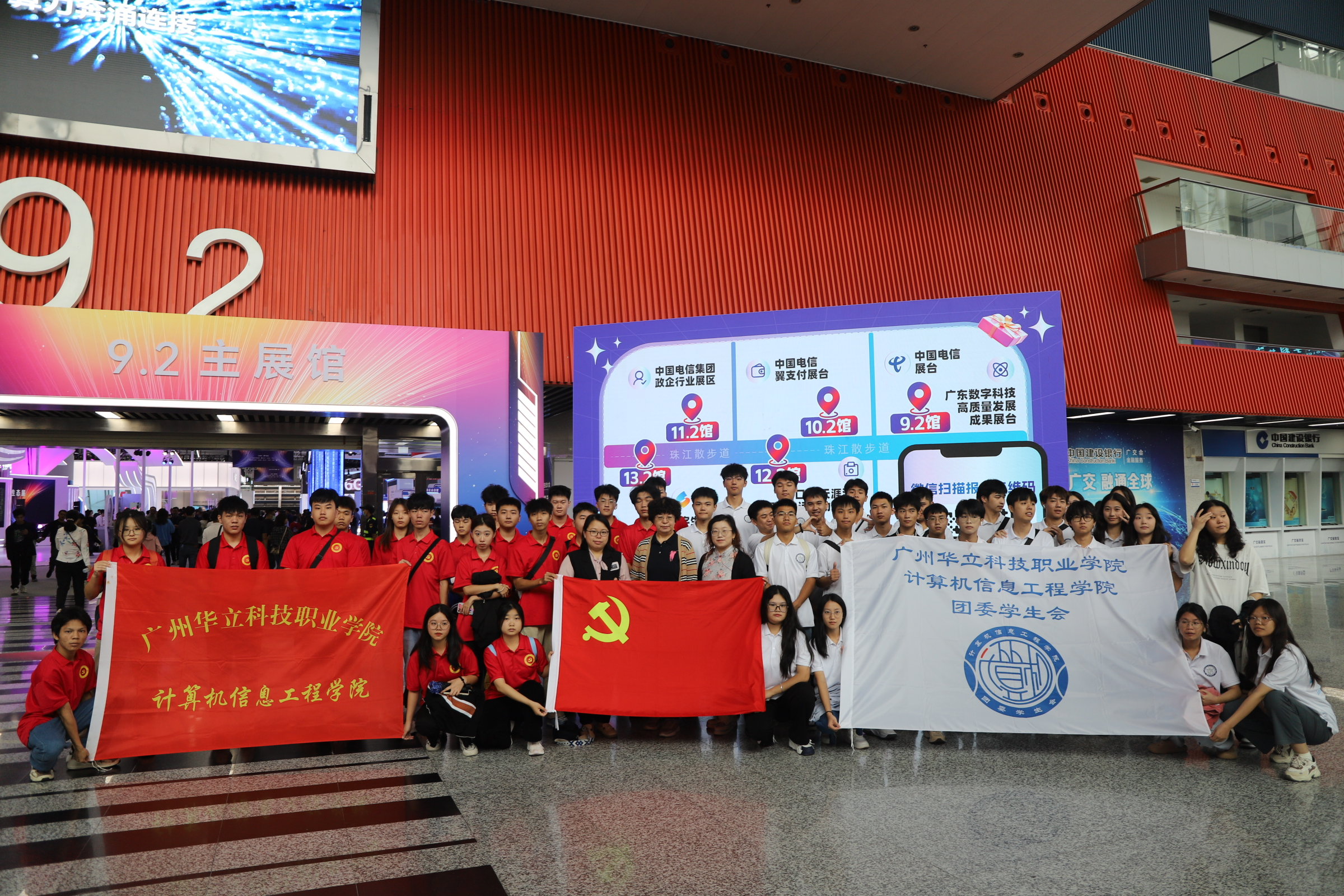 2023年11月12日,廣州華立科技職業(yè)學院計算機信息工程學院師生受邀參加中國電信2023“數(shù)字科技,煥新啟程”——數(shù)字科技生態(tài)展,開展實踐活動。學校產(chǎn)教融合辦主任陳茜、計算機信息工程學院院長王建華教授、黨總支書記閔小翠、團委書記胡蓉、黨建小組指導老師張栢桐以及50名學生代表抵達會展中心現(xiàn)場進行學習交流,院長王建華教授應邀在展會上作云計算技術專題介紹。