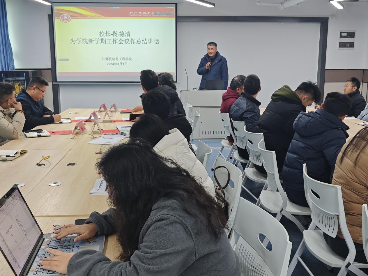 “新學(xué)期,新風(fēng)貌”為貫徹落實(shí)學(xué)校召開的“堅(jiān)持高質(zhì)量發(fā)展 辦一流高等職業(yè)院?!钡臅?huì)議精神,切實(shí)做好新學(xué)期各項(xiàng)工作,順利開展日常教學(xué),3月1日下午,計(jì)算機(jī)學(xué)院在西三教學(xué)樓501(連線云浮校區(qū)計(jì)算機(jī)系),召開2023-2024學(xué)年第二學(xué)期第一次教學(xué)會(huì)議。學(xué)校高度重視學(xué)院發(fā)展,陳德清校長到會(huì)指導(dǎo)工作。