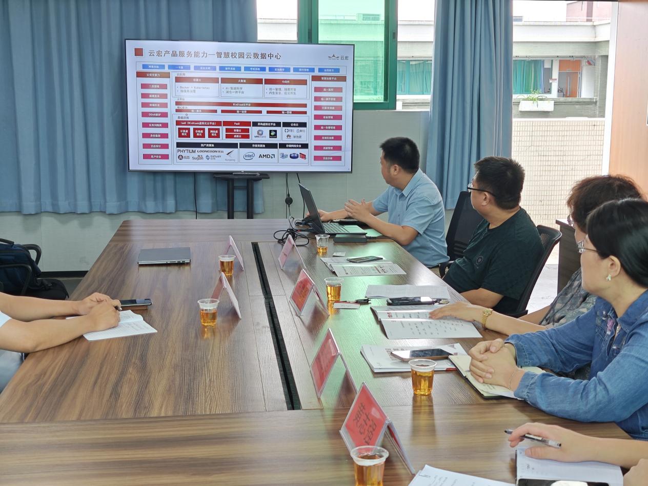 計(jì)算機(jī)學(xué)院黨總支書記宋海泉對云宏信息科技股份有限公司的到來表示熱烈歡迎,并介紹了學(xué)院的專業(yè)設(shè)置和人才培養(yǎng)情況,對比公司的人員需求和聯(lián)合培養(yǎng)方式,我院學(xué)生是非常符合條件的,有望與貴公司開展校企協(xié)同育人新的人才培養(yǎng)模式。