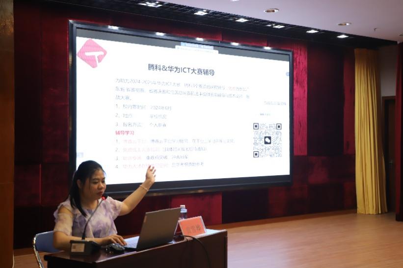 廣州華立科技職業(yè)學(xué)院于2024年5月14日在東一報告廳舉辦中國區(qū)華為ICT大賽2024-2025省初賽(校內(nèi)賽)的培訓(xùn)講座。此次講座旨在提升參賽選手的ICT知識水平和實踐能力,為即將到來的校內(nèi)選拔賽做好充分準備。
