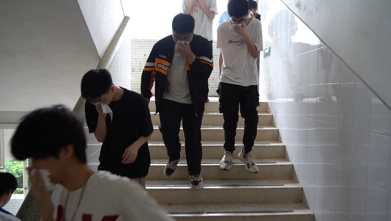 在任課老師的指揮下,學(xué)生們保持冷靜,按照疏散路線有序撤離。前排學(xué)生前往前門撤離,通過西邊樓梯快速下樓;后排學(xué)生則往后門撤離,利用東邊樓梯安全離開。在疏散過程中,學(xué)生們嚴(yán)格遵守彎腰低姿、用衣服捂住口鼻等安全要領(lǐng),有效防止了吸入有毒煙霧。