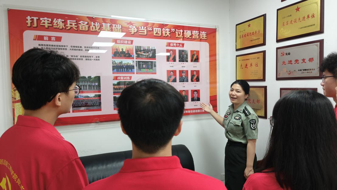 隨后,陳媛同志帶領大家參觀了增城區(qū)武裝部的內部建設,介紹了武裝部黨紀教育整頓工作流程。同時表示,希望雙方能夠繼續(xù)推動學院黨紀建設、武裝部黨紀建設融合發(fā)展,以互幫、互學、互動實現(xiàn)優(yōu)勢互補、共同發(fā)展,加強校部聯(lián)動共建,從而提升師生紀律意識、強軍愛國意識,履行服務群眾、服務社會的責任義務。