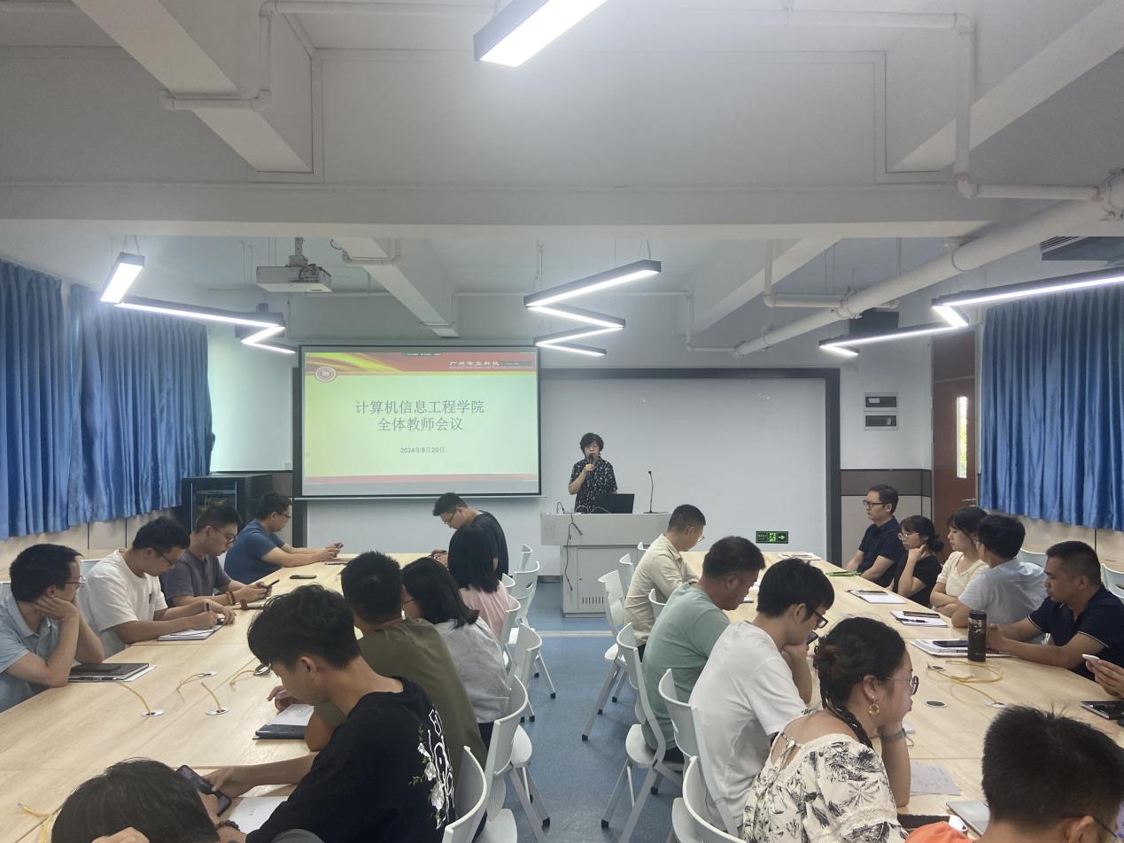 2024年9月20日,廣州華立科技職業(yè)學(xué)院計(jì)算機(jī)信息工程學(xué)院于西三501舉行了全體教師會(huì)議。會(huì)議由王建華院長(zhǎng)主持,就黨建、教學(xué)、學(xué)生管理、行政人事等各線(xiàn)近期工作進(jìn)行了部署安排,并強(qiáng)調(diào)了弘揚(yáng)教育家精神、提高教師隊(duì)伍素質(zhì)和師德修養(yǎng)的重要性。