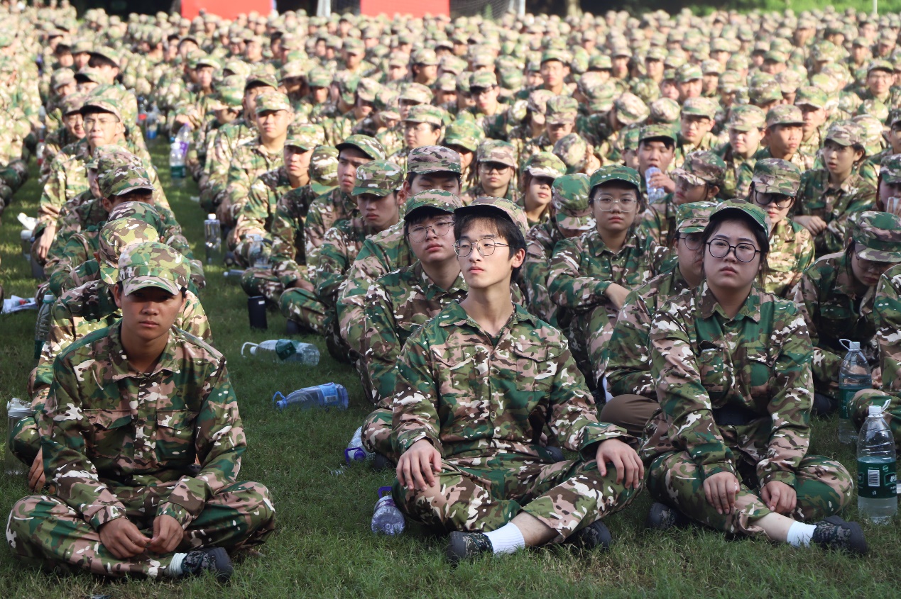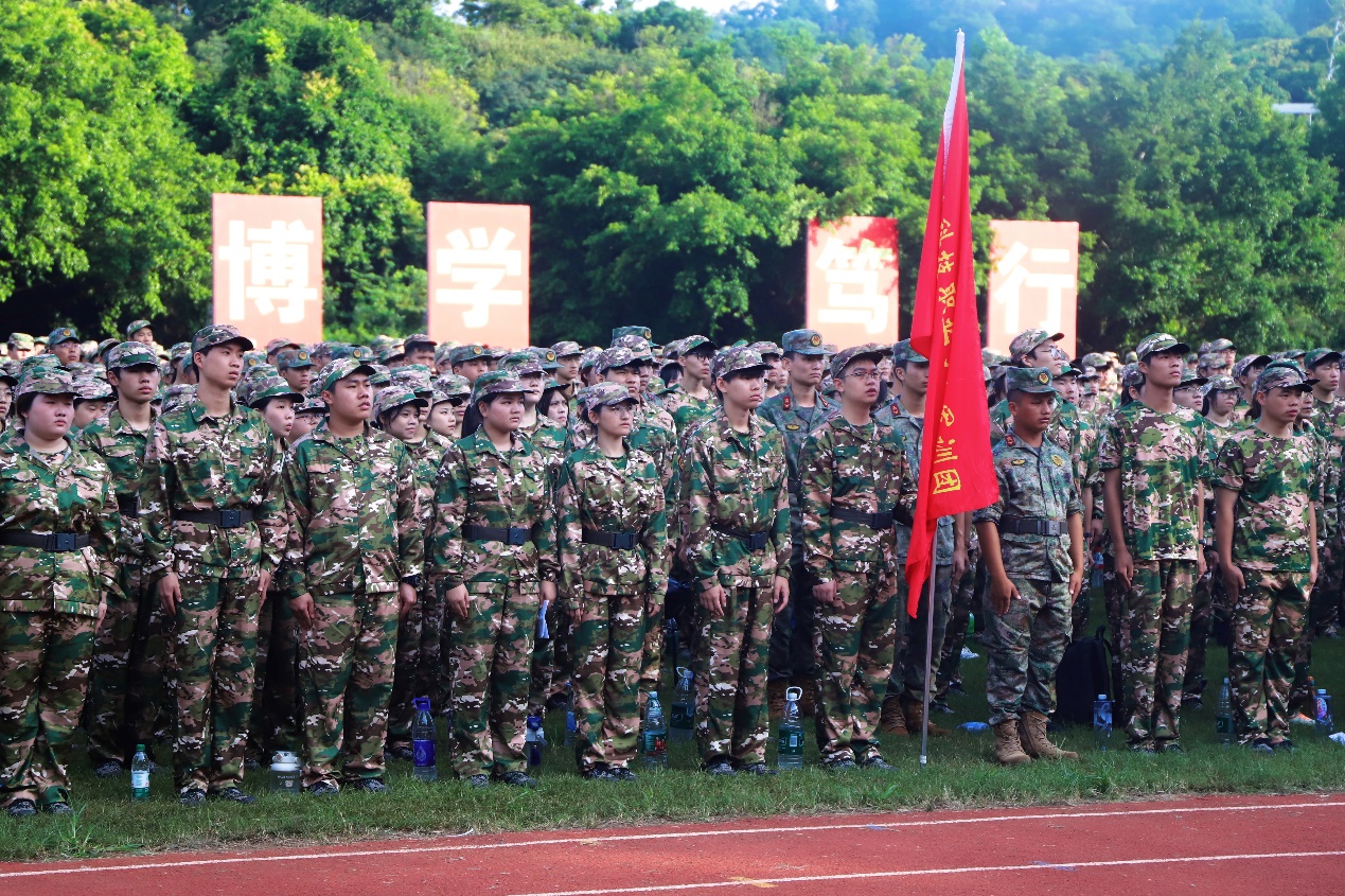 隨后,軍訓(xùn)動員環(huán)節(jié)正式開始。軍訓(xùn)團領(lǐng)導(dǎo)、廣州市增城區(qū)人民武裝部指導(dǎo)員駱健康代表教官上臺發(fā)言,詳細介紹了軍訓(xùn)的目的、意義以及具體安排。他強調(diào)了學(xué)生軍訓(xùn)工作是加強全民國防教育、國防后備力量建設(shè)和青年學(xué)生素質(zhì)教育的重要措施。駱教官對全體教官做出了嚴格要求和對同學(xué)們的希望。駱教官的講話鏗鏘有力、鼓舞人心,贏得了在場師生的陣陣掌聲。