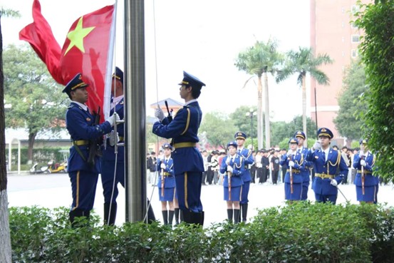隨著中華人民共和國國歌的雄壯旋律,升旗儀式正式開始。鮮艷的五星紅旗在全體師生的注視下冉冉升起,迎風飄揚。全體師生莊嚴肅立,向國旗行注目禮,表達了對祖國的熱愛和敬意。