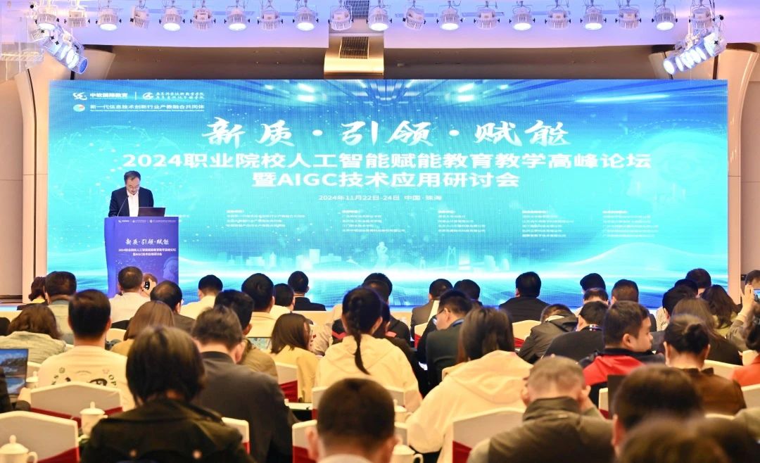 為深入學習貫徹黨的二十屆三中全會精神,落實國家關于開展“人工智能+”行動的戰(zhàn)略部署,圍繞“新質·引領·賦能”主題,以人工智能為驅動,提升教育教學創(chuàng)新能力,助推職業(yè)院校辦學能力高水平、產教融合高質量建設,11月22—24日,2024職業(yè)院校人工智能賦能教育教學高峰論壇暨AIGC技術應用研討會在珠海召開,全國各大職業(yè)院校校長以及行業(yè)企業(yè)代表近500人參加活動并作分享交流。我院閔小翠副院長受邀參加了此次研討會,與國內外教育專家共同探討人工智能如何賦能教育教學,引領教育未來。