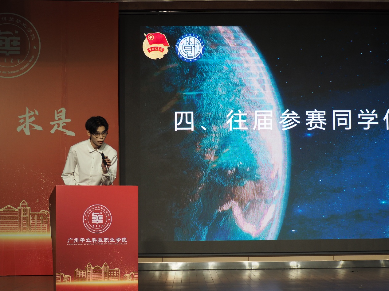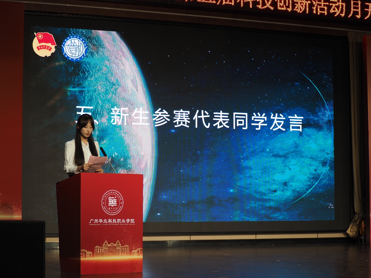 隨后,往屆參賽代表馮俊杰同學與新生參賽代表彭依琳同學相繼上臺發(fā)言。他們都提到了科技創(chuàng)新的重要性,從生活多領域舉例,展現(xiàn)科技影響力,通俗易懂又具說服力。語言簡潔明快、情感飽滿,瞬間點燃了同學們參與活動的熱情。他們的發(fā)言為科技活動月營造了良好氛圍,期待同學們在活動中能如他們所說,勇敢探索,共創(chuàng)佳績。