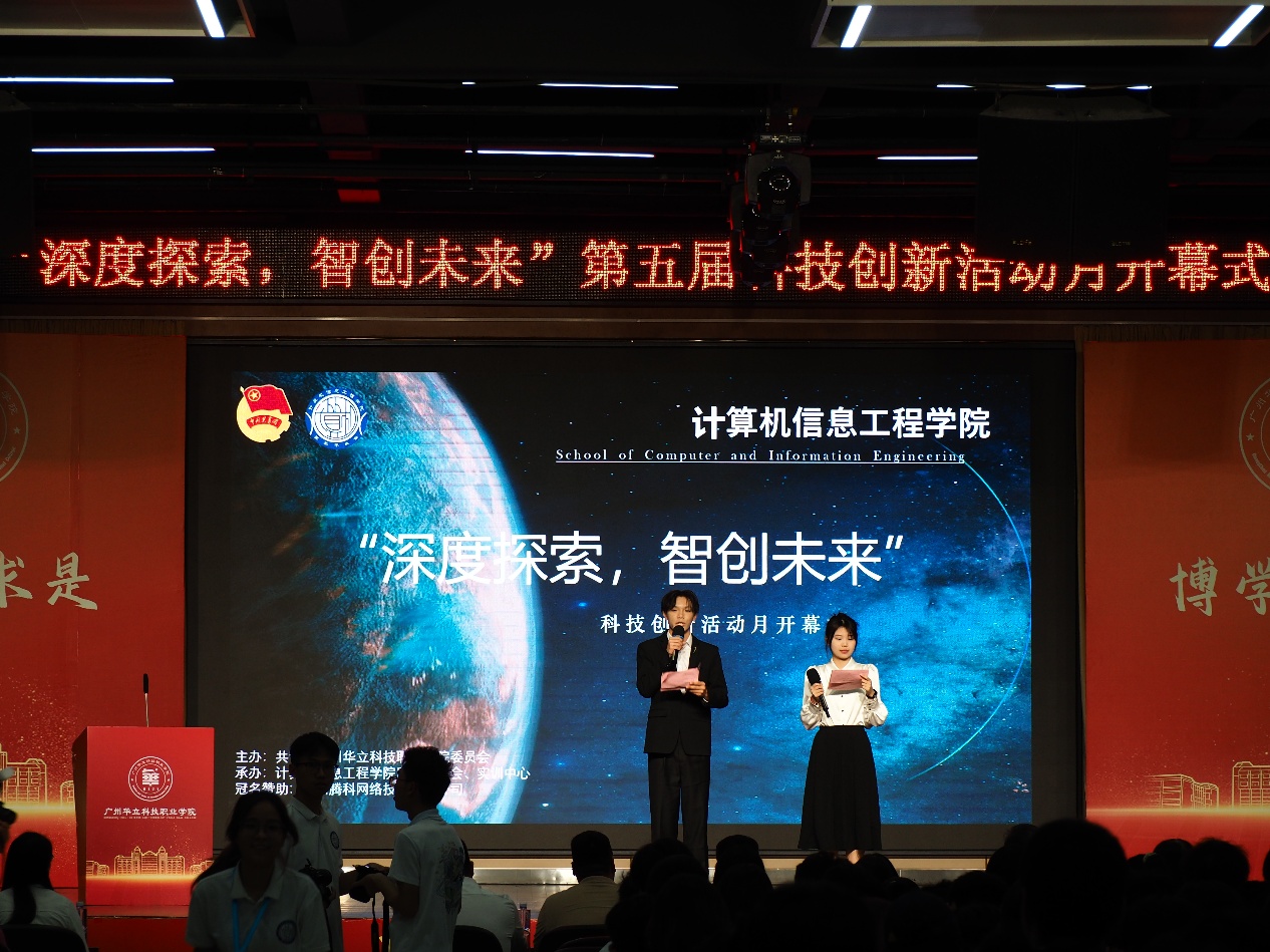 2025年4月9日18:30,廣州華立科技職業(yè)學院的西區(qū)圖書館八樓內(nèi)座無虛席、氣氛熱烈,一年一度的科技創(chuàng)新活動月開幕式在這里盛大舉行。本次科技創(chuàng)新活動月以“深度探索,智創(chuàng)未來”為主題,為全校師生帶來一場探索科技前沿、激發(fā)創(chuàng)新活力的盛會。