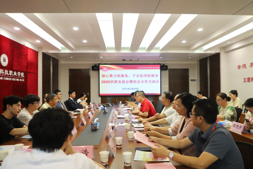 為精準(zhǔn)對接企業(yè)人才需求,推動教育鏈、人才鏈與產(chǎn)業(yè)鏈深度融合,5 月 28 日,我校邀請廣州正佳教育科技有限公司、中國聯(lián)合網(wǎng)絡(luò)通信有限公司東莞市分公司等多家企業(yè),在行政樓 305 會議室召開 “凝心聚力優(yōu)服務(wù),千企拓崗促就業(yè)” 校企合作交流會暨簽約儀式。學(xué)校校長廖俊杰、黨委書記陳良聲、副校長陳顯強(qiáng)出席會議,我院黨委書記宋海泉代表學(xué)院參與活動,與企業(yè)代表共商校企協(xié)同育人新路徑。