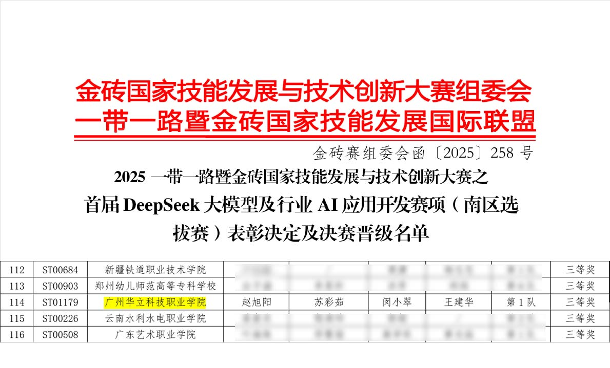 本次南區(qū)選拔賽于2025年6月22日在線上舉辦,賽前說明會(huì)于6月21日召開。競(jìng)賽內(nèi)容緊密圍繞大模型及行業(yè)AI應(yīng)用開發(fā),旨在考察選手對(duì)相關(guān)技術(shù)的實(shí)踐應(yīng)用能力。作為團(tuán)體賽,每支隊(duì)伍由2名參賽選手和1-2名指導(dǎo)老師組成,我校代表隊(duì)嚴(yán)格遵循競(jìng)賽規(guī)則,以院校為單位報(bào)名參賽。在9:00-12:00的競(jìng)賽時(shí)長(zhǎng)內(nèi),完成了從技術(shù)方案設(shè)計(jì)到工程實(shí)踐的全流程考核,在激烈競(jìng)爭(zhēng)中脫穎而出,成功斬獲三等獎(jiǎng)。