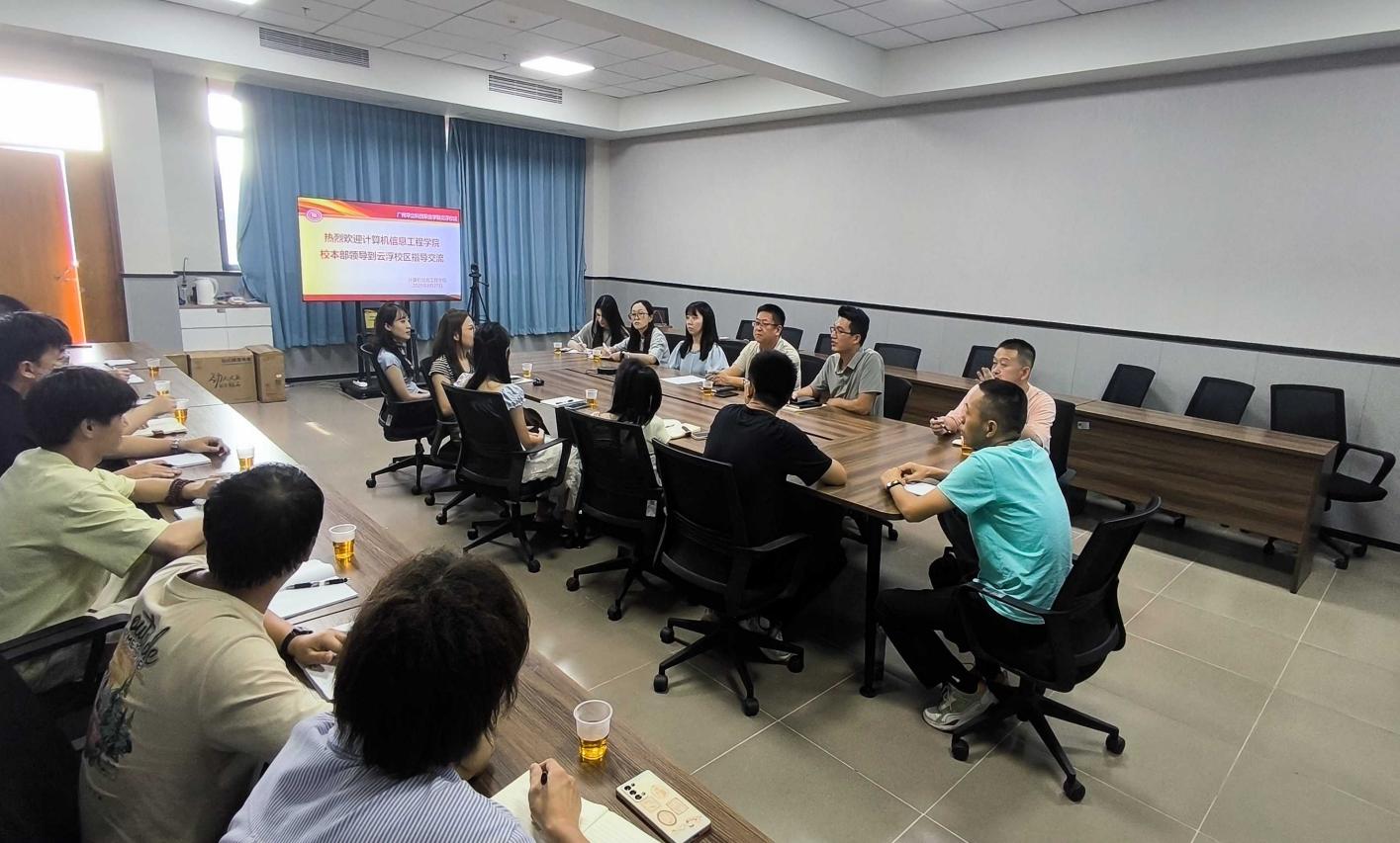 為深入貫徹落實(shí)新學(xué)年學(xué)院重點(diǎn)工作部署,進(jìn)一步加強(qiáng)兩校區(qū)之間的協(xié)同配合,2025年8月27日,計(jì)算機(jī)信息工程學(xué)院黨總支書記、副院長宋海泉帶隊(duì)前往云浮校區(qū)計(jì)算機(jī)學(xué)院開展交流指導(dǎo)活動(dòng)。兩校區(qū)相關(guān)負(fù)責(zé)人及教師代表參加本次會(huì)議,圍繞新學(xué)期重點(diǎn)任務(wù)進(jìn)行深入研討和統(tǒng)一部署。