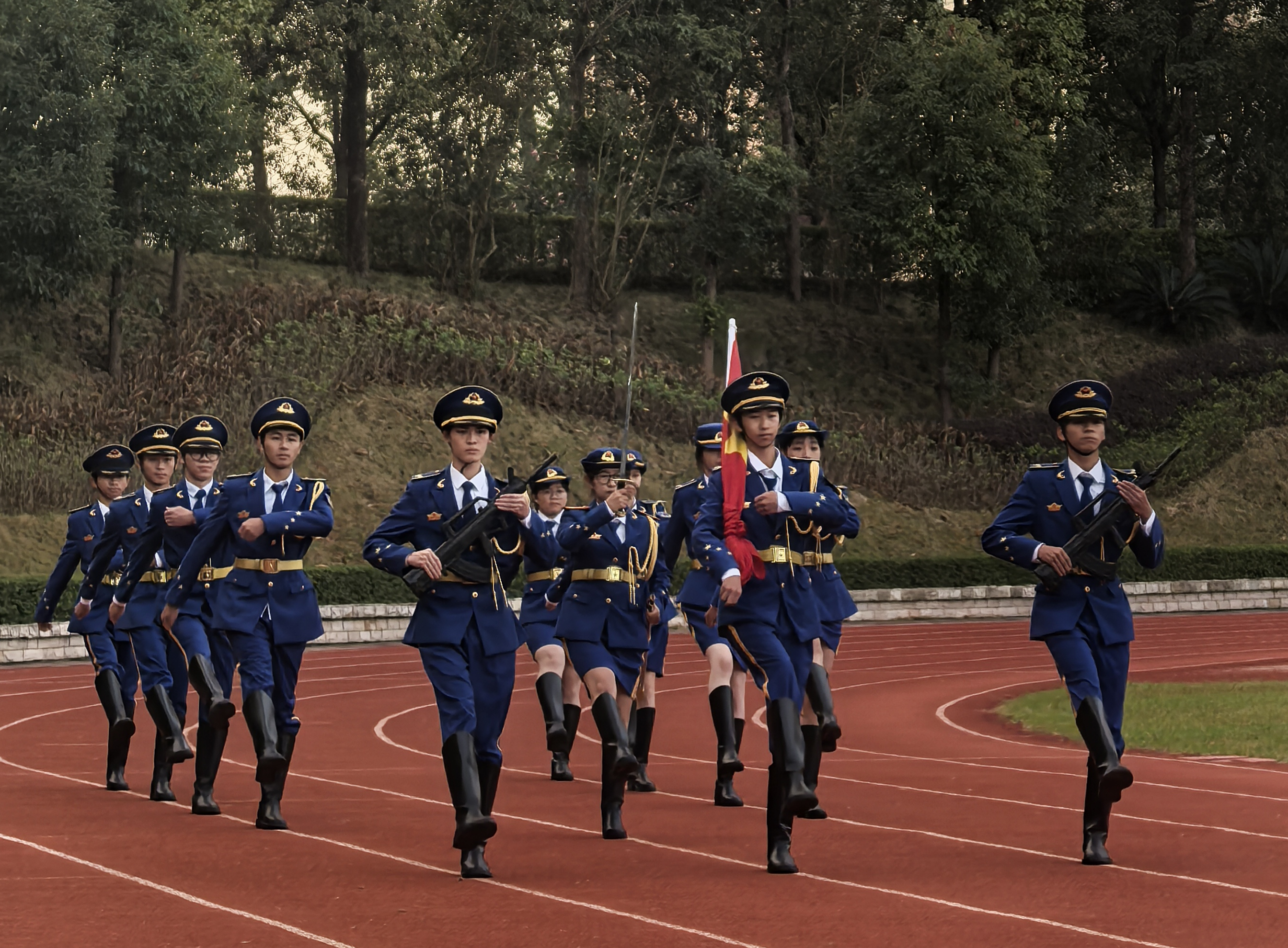 升旗儀式上,國旗護(hù)衛(wèi)隊隊員身著統(tǒng)一制服,邁著鏗鏘有力的步伐,昂首挺胸走向國旗臺。他們精神飽滿、目光堅定,每一個步伐都凝聚著對祖國的崇敬與熱愛。伴隨著雄壯激昂的《義勇軍進(jìn)行曲》,鮮艷的五星紅旗冉冉升起、迎風(fēng)飄揚。全體師生肅立注目,齊聲高唱國歌,嘹亮的歌聲回蕩在校園上空,愛國情懷在每個人心中激蕩。