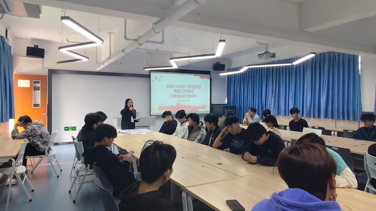 為精準助力學業(yè)困難學生筑牢學業(yè)基礎(chǔ)、重拾學習信心,切實保障人才培養(yǎng)質(zhì)量,計算機信息工程學院于2025年11月27日召開2025-2026-1學期學業(yè)預警幫扶工作會議。會議由教務(wù)員黃斯華老師主持,全體學業(yè)預警學生參會。