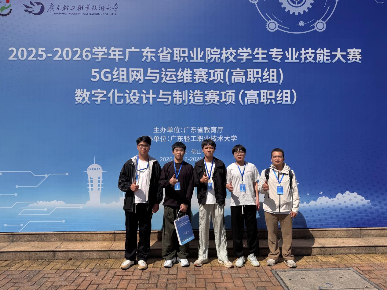 2026年3月12日至13日,由廣東省教育廳主辦的2025-2026學(xué)年廣東省職業(yè)院校技能大賽(高職組)“5G組網(wǎng)與運(yùn)維”賽項(xiàng)在廣東輕工職業(yè)技術(shù)大學(xué)南海北校區(qū)舉行。我校計(jì)算機(jī)信息工程學(xué)院帶領(lǐng)學(xué)生姚期智、鄧冠華、張季財(cái)、張祺嶺組成參賽隊(duì)伍,與來自全省44所院校的代表隊(duì)同臺競技,最終憑借扎實(shí)的專業(yè)技能和出色的團(tuán)隊(duì)協(xié)作榮獲三等獎。