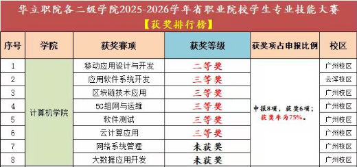 3月13日至14日,廣東省職業(yè)院校學(xué)生技能大賽2025-2026年度移動應(yīng)用設(shè)計與開發(fā)賽項在廣東工貿(mào)職業(yè)技術(shù)學(xué)院舉辦。此次大賽全省66所高職院校代表隊參賽,經(jīng)過一天的激烈角逐,計算機信息工程學(xué)院彭依琳、魏淙正、劉奕美、黃嘉琪組成的參賽隊,在李鵬、王建華、閔小翠老師的悉心指導(dǎo)下,以全省66支賽隊排名第11名的優(yōu)異成績榮獲省賽二等獎,為學(xué)校爭得了榮譽。