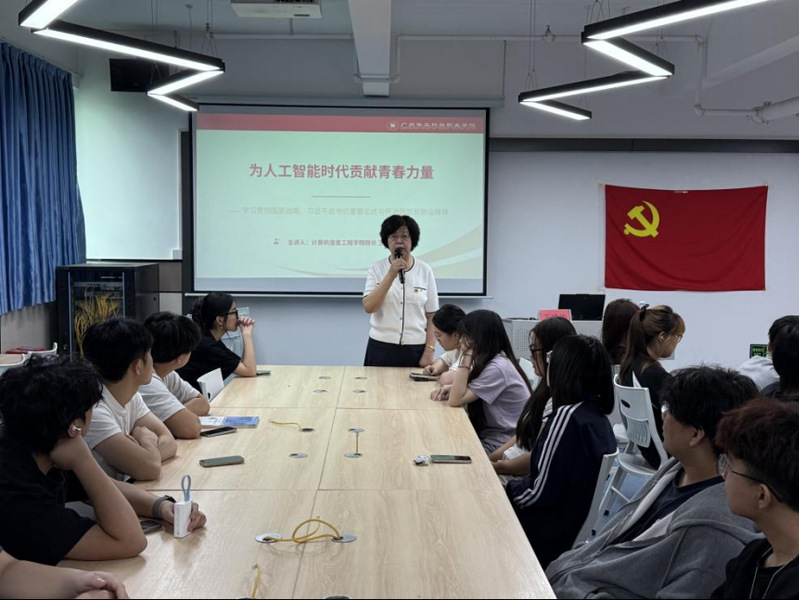 課上,王建華院長深入解讀人工智能作為“國之大者”的戰(zhàn)略意義,強(qiáng)調(diào)其是引領(lǐng)科技革命、催生新質(zhì)生產(chǎn)力的核心力量。她寄語青年學(xué)子牢記 “立大志、明大德、成大才、擔(dān)大任” 的囑托,以“挺膺擔(dān)當(dāng)”踐行時(shí)代責(zé)任,爭做自主創(chuàng)新“破壁者”、賦能百業(yè)“實(shí)干家”、科技向善“守護(hù)人”、全球競合“先鋒員”,同時(shí)筑牢專業(yè)根基、拓展交叉視野、錘煉過硬本領(lǐng),構(gòu)建“四位一體”能力體系。