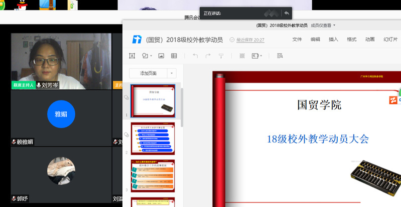2020年4月24日9時(shí)30分,國貿(mào)學(xué)院召開2018級(jí)實(shí)習(xí)動(dòng)員會(huì)及指導(dǎo)教師培訓(xùn)會(huì)。會(huì)議由隗波揚(yáng)副院長主持,2018級(jí)校外指導(dǎo)教師參加會(huì)議。