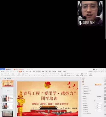 管理學(xué)院、國(guó)貿(mào)學(xué)院青馬工程“愛團(tuán)學(xué)·越努力”團(tuán)學(xué)培訓(xùn)于2020年4月6日通過騰訊會(huì)議軟件線上進(jìn)行授課。