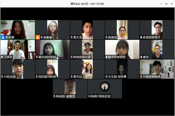 在團總支陳媛書記宣讀過演講規(guī)則后,各競選人有序進行著本次演講,依次進入騰訊會議進行面試。