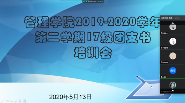 我院于2020年5月13日晚上19點(diǎn)在騰訊會(huì)議開展了管理學(xué)院2019-2020學(xué)年第二學(xué)期17級(jí)團(tuán)支書培訓(xùn)會(huì)。管理學(xué)院學(xué)生管理唐濤副主任、管理學(xué)院團(tuán)總支陳媛書記、學(xué)生會(huì)主席黃天龍同學(xué)、管理學(xué)院團(tuán)總支組織部負(fù)責(zé)人以及17級(jí)各班團(tuán)支書出席了本次培訓(xùn)會(huì)議。