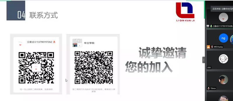 宣講會以騰訊會議的形式舉行,由黃冠霖老師主持。在網(wǎng)絡(luò)招聘宣講會上,金賬本會計(jì)服務(wù)(廣東)有限公司、深圳鼎泰財(cái)務(wù)公司、深圳中倫會計(jì)師事務(wù)所、東莞立勤會計(jì)服務(wù)有限公司以及中國平安分別就各自企業(yè)的發(fā)展前景、企業(yè)成就、招聘崗位、專業(yè)要求、工作地點(diǎn)、晉升政策、薪資待遇、員工福利、企業(yè)文化等方面作了具體的講解與介紹。在宣講中,同學(xué)們分別咨詢個(gè)人職業(yè)發(fā)展前景、公司發(fā)展理念等相關(guān)問題。